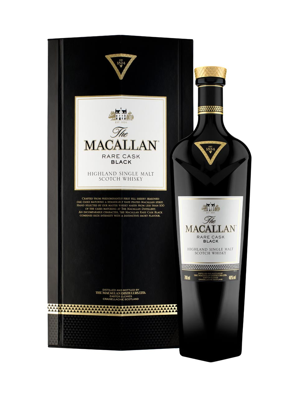 A Macallan with a surprisingly distinctive attitude, Rare Cask Black is a whisky unlike any other Macallan today. This is a darkly, smoky and unexpected Macallan crafted by creativity, innovation and experimentation at The Macallan distillery. Less than 100 casks maturing at The Macallan distillery have contributed to the creation of this out of character smoky whisky. Drawn from 100% sherry seasoned casks, built from Spanish and American oak. The majority of these, over 50%, are first fill.